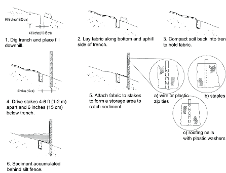 - Detention pond: When inputting Silt Fences in stormy environments or seasons, landowners should always consider diverting sediment-laden stormwater to a detention pond in conjunction with the use of Silt Fences.