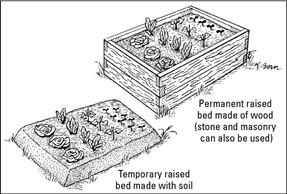 - In very wet areas or areas with very poor or hard soils: Consider building “raised beds” to drain the excess water which tends to accumulate in the soil.